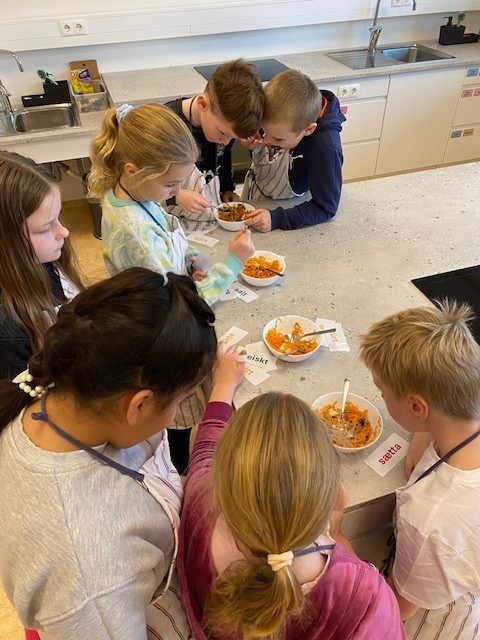 Eitt af markmiðum heimilisfræðinnar er að fagið sé bæði skemmtilegt, einstaklega lærdómsríkt og gagnlegt. Börn eru svo skapandi og njóta þess að útbúa eitthvað hollt og gott eða sætt og safaríkt og eru hreykin af frammistöðu sinni. Stundum eru gerðar tilraunir eins og þegar 4. bekkur lærði um bragð og bragðskyn. Krakkarnir útbjuggu gulrótarsalat, settu í fjórar skálar og mismunandi bragðgjafa í hverja skál. Síðan flokkuðu þau salatskálarnar í súrt, sætt, salt og beiskt.