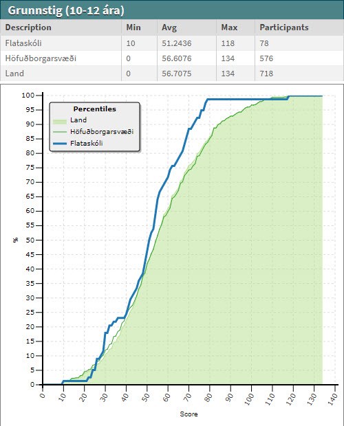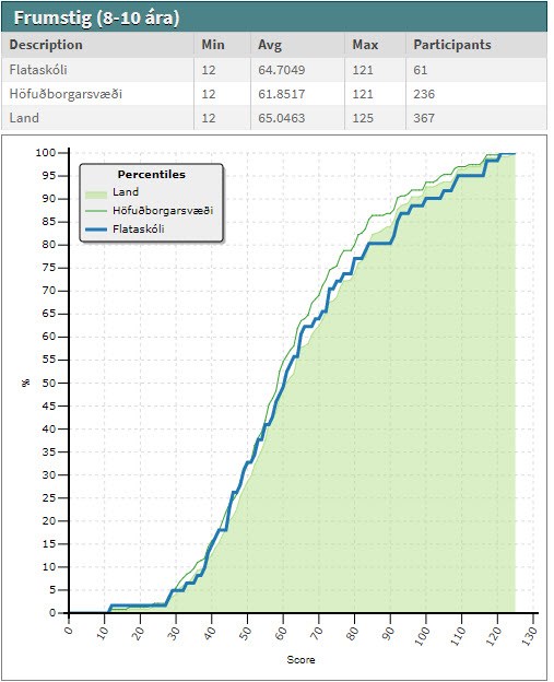Hundrað níutíu og tveir nemendur í Flataskóla tóku þátt í Bebras keppninni í haust. Bebras áskorunin kannar rökhugsun og tölvufærni nemenda með því að láta þátttakendur leysa krefjandi verkefni í tölvum. Nemendur Flataskóla voru á meðal 2044 þátttakenda á Íslandi og fjórði fjölmennasti hópurinn. Garðabæjarskólarnir voru duglegir að leyfa nemendum að spreyta sig á þessum verkefnum en það voru auk okkar Hofsstaðaskóli og Álftanesskóli. Hæst var hægt að fá 180 stig fyrir að vinna og skila öllum verkefnunum en aðeins einn þátttakandi af 2044 fékk mest 140 stig. Þeir nemendur sem fengu yfir 100 stig í Flataskóla voru þessir í 7. bekk: Nökkvi H., Kristín Þ., Ari K., Ásta B., Hanna P., Eva B., og Hjalti H. Í 5. bekk voru það þau: Aron G., María H., Jón P., Guðmundur Ó., og Hilmar D. og í 4. bekk voru það þau Alexandra K., Jón Smith og Snorri Hjaltason. Hér fyrir neðan er hægt að bera saman niðurstöður frá öllu landinu, höfuðborgarsvæðinu og Flataskóla. Myndir frá keppninni er hægt að sjá í myndasafni skólans.